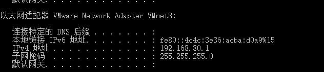 ipconfig查看VMware Network Adapter VMnet8的ip地址